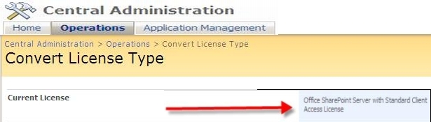 Next you would want to determine your edition in Central Administration -> Operations -> Convert License Type.